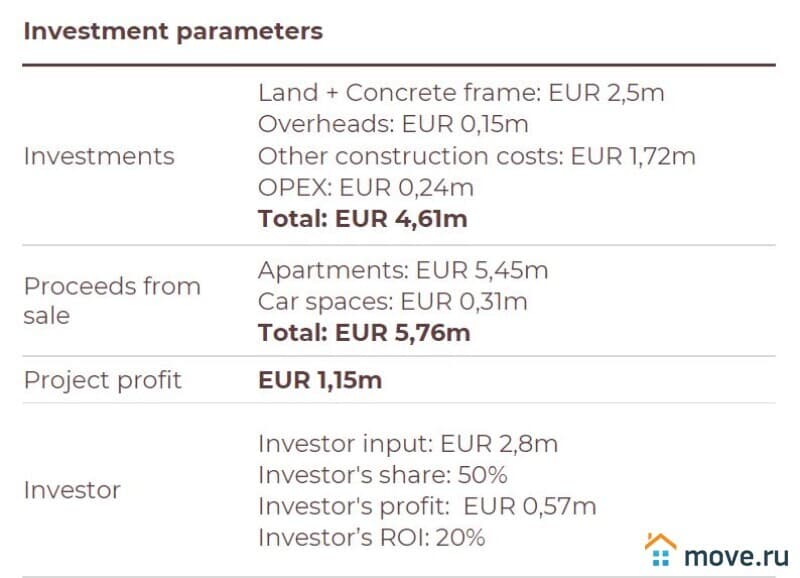 Сумма дохода инвестора 575 000 евро